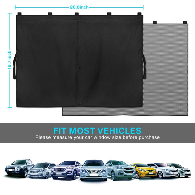 - 🚗 Fits Most Cars Size: The SIZE of this car window shade is 27"x20". Because this car window curtain is adjustable, it is fits almost all models such as standard cars, SUV, Minivans, MPV and other type cars.