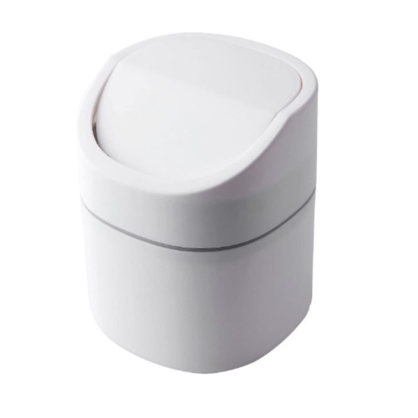 DIZLAS Tabletop Rotating Mini Trash Can with Lid, Small, White