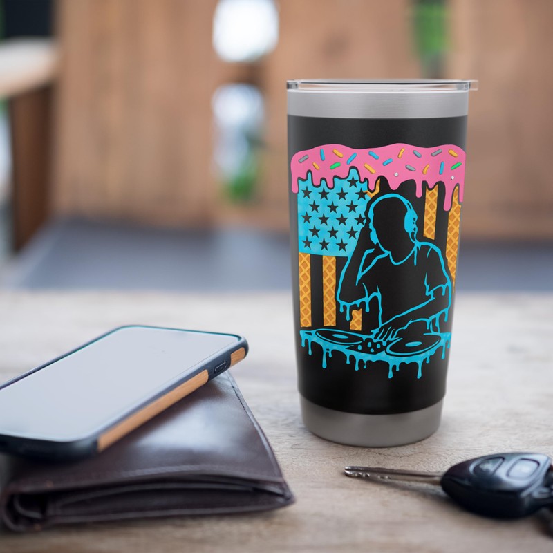 DJ Ice Cream USA Flag Melting Vinyl & Art Stainless Steel Insulated Tumbler