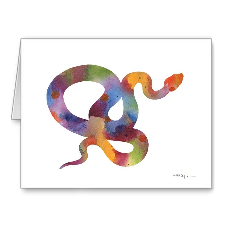 DJ Rogers Fine Art Snake - Set of 10 Watercolor Snake Note Cards With Envelopes