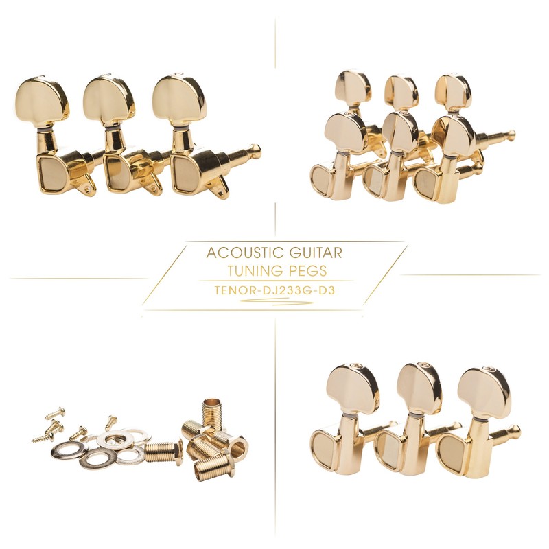 DJ233G-D3 TENOR Acoustic Guitar Tuners, Tuning Key Pegs/Machine Heads for Acoustic Guitar with Gold Plated Finish and Gold Plated Buttons.