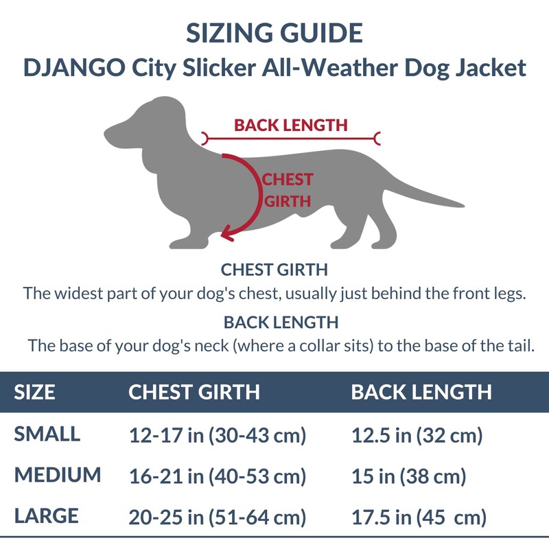 - ALL-SEASON DOG COAT: Designed for all seasons, this lightweight, water-repellent, and windproof dog jacket is equally effective for chilly autumn days, winter snow storms, and summer rain showers. DJANGO's City Slicker is perfect for a crisp autumn walk, a hike up a snowy mountain trail, or a rainy outing in the city.