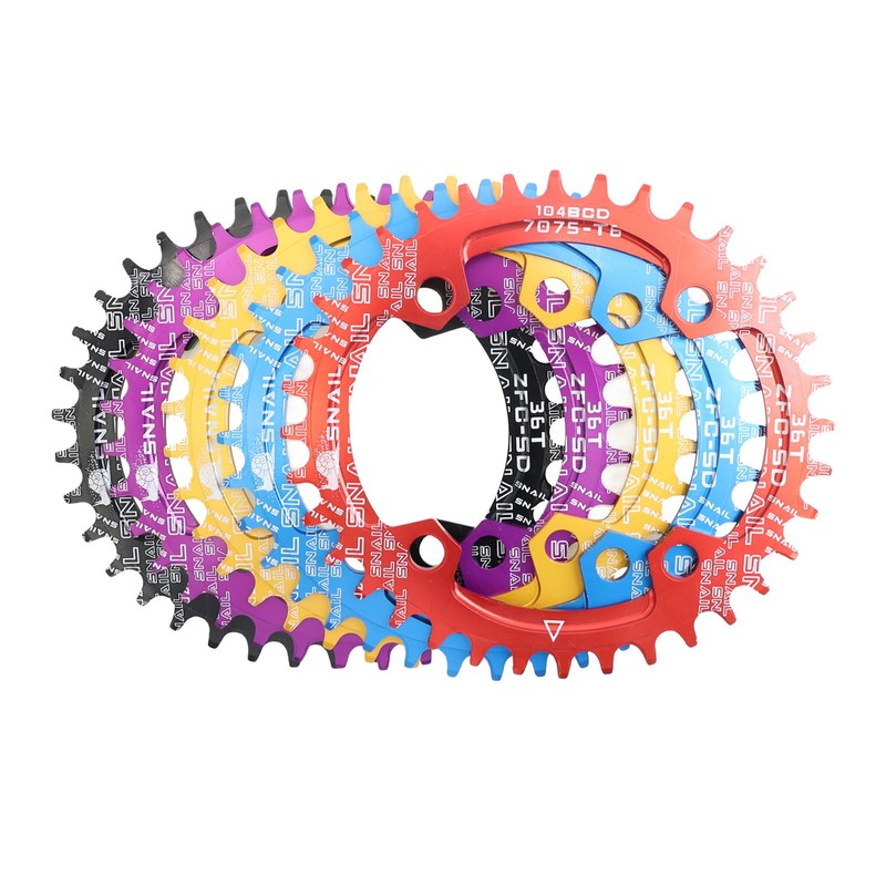 - Alu 7075& CNC Process: Aluminum 7075 and full CNC process, offer you stiffness and lightweight bike chainring. Weight: 30T-38T, 38-67g(1.3-2.4oz). 40T-44T, 90-130g(3.2-4.6oz). 46T-52T, 150-190g(5.3-6.7oz).