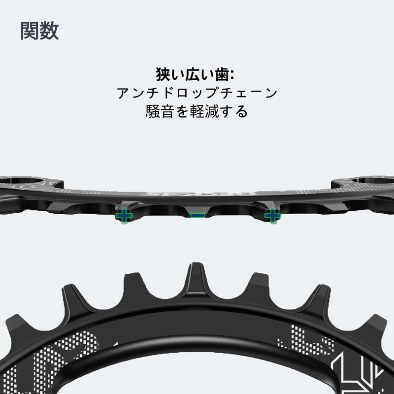 - UPGRADED Narrow WIDE TEETH: The current tooth shape is the narrow, wide teeth of the 2nd generation. High curvature makes it easy to clean and self-cleaning Extends the life of your chainring.