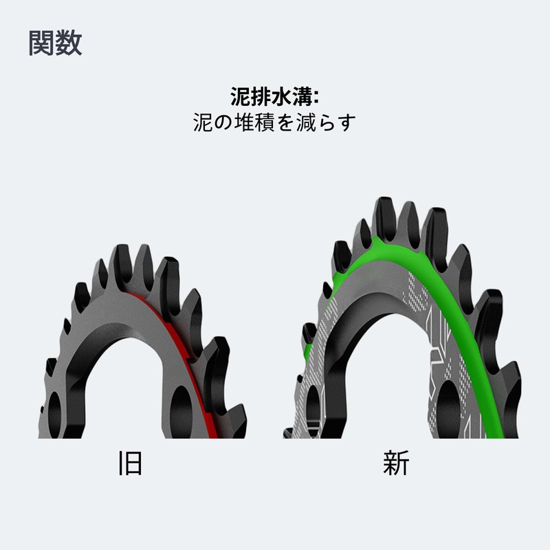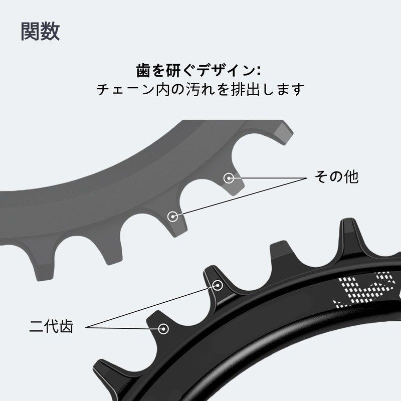 - UPGRADED Narrow WIDE TEETH: The current tooth shape is the narrow, wide teeth of the 2nd generation. High curvature makes it easy to clean and self-cleaning Extends the life of your chainring
