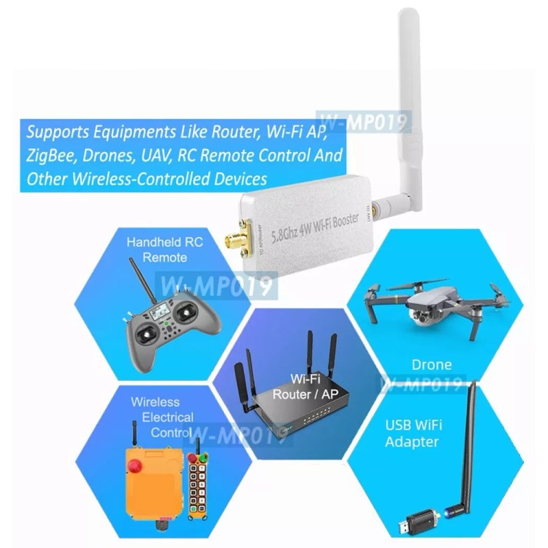 - This 5.8G Wi-Fi signal booster easily amplifies the transmitting and receiving power of 5.8G wireless equipments such as router, Wi-Fi AP, ZigBee, wireless security cameras, drones, UAV and radio-controlled equipment.