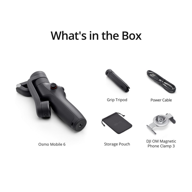 OverviewThis intelligent gimbal is lightweight and compact. Simply unfold to start filming smooth dynamic footage. With the built-in extension rod, you can include more friends in the photo and take the perfect selfie. A whole host of intelligent features are at your fingertips, including ShotGuides to help capture the scenario you're in or creative features like Timelapse. Use the DJI Mimo to add the final touches to your content and share. DJI Osmo Mobile 6 is the ultimate creative tool to elevate your creations on the go.FeaturesA new status display panel: Check how much battery you have left, system indicator status, or which gimbal mode you're in. The M button makes it easy to switch between different modes and get unique with your shots.Flip between horizontal and vertical: It's as effortless as double-clicking the switch button to go from horizontal to vertical shooting.Notes1. Auto pop-ups on the DJI Mimo app are only supported on iPhone and are subject to actual circumstances. When using DJI Osmo Mobile 6 for the first time, enable Quick Launch in the DJI Mimo app and follow the instructions to complete authorization.2. Tested when following a single subject.3. LightCut is a smartphone editing app recommended by DJI.4. Currently, only Apple Watch is supported (Apple Watch Series 7/8/9, Apple Watch SE 2, Apple Watch Ultra 1/2, with an operating system of watchOS 9 or later).* Due to platform compatibility issue, the DJI Mimo app has been removed from Google Play. You cannot search for DJI Mimo in Google Play. To ensure a better product usage experience, please log in to the DJI official website to download the latest version of DJI Mimo.