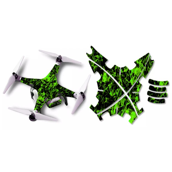 DJI Phantom 2 Drone Wrap RC Quadcopter Decal Custom Skin Accessory Green Flames
