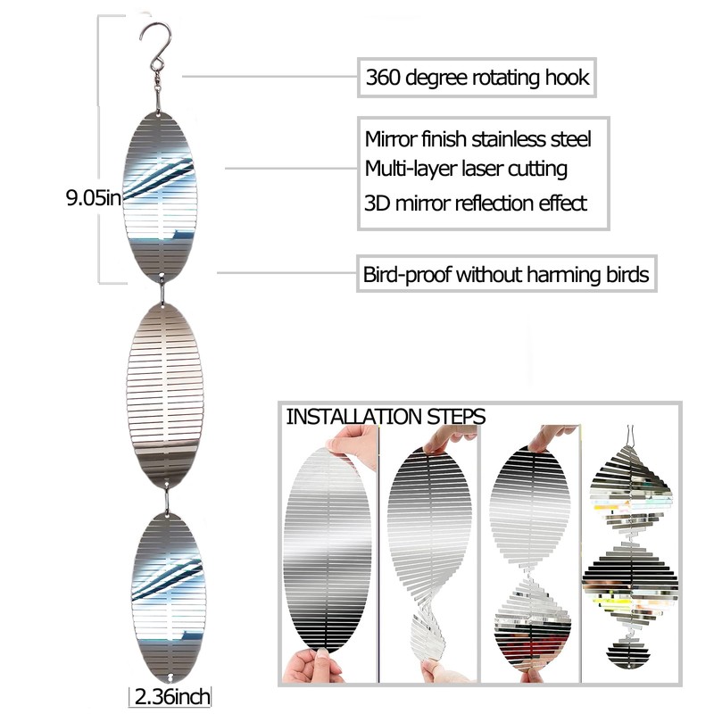 - Ideal for Bird Control: The bird-reflecting wind spinners stainless steel material, can adapt to all weathers .With both practical and decorative. It can be used in farmland to protect rice and vegetables,or hung on fruit trees or vine,Also looks nice in the backyard, wall, balcony, window,garden,orchards,yard lawn, pond decor.