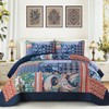 - Celebrate eclectic charm with this eye-catching quilt set, featuring bold framed panels of bohemian motifs, classic paisley swirls, and vintage floral prints. Each oversized block is artfully arranged and bordered with a solid-color frame, creating a modern patchwork look that stands out.