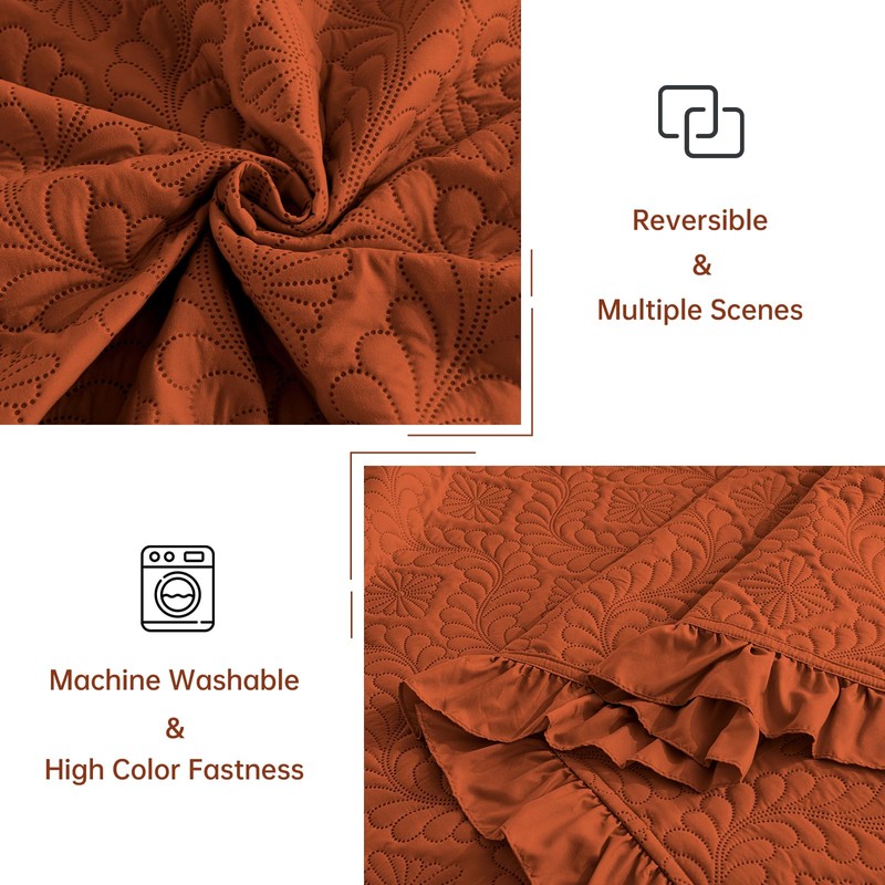 - All Season Use: This orange quilt set is suitable for all season and perfect for families with kids or pets. you could use as air conditioning quilt in summer. In winter, you could add a blanket or comforter underneath. Depending on the season, you can use it as a quilt, bedspread or coverlet.