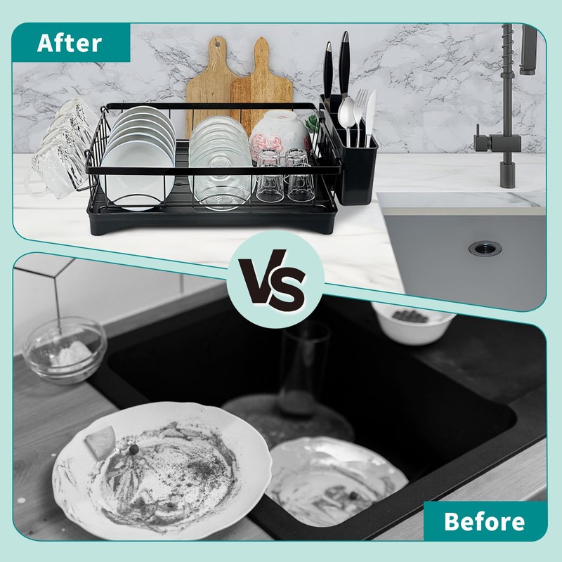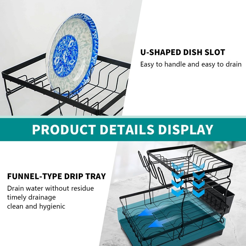 - This double-layer rack can fully utilize the counter space and efficiently stack and drain dishes. Support disassembly. It, together with the cutlery rack and cup holder, provides a wider space for storing cutlery such as plates, bowls, and cups