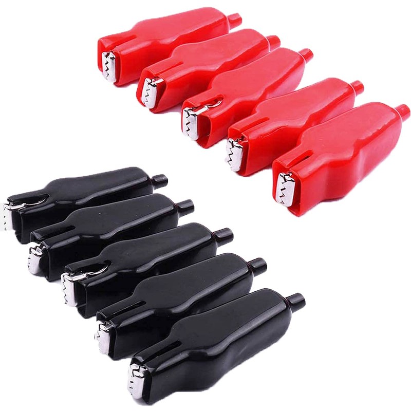 - Safety: Sheathed by the totally insulated PVC, the battery clamps is reliable and safe. Performance and quality tested, Durable 20-amp copper alligator battery clips (10-Amps per clip)