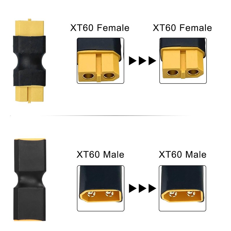 - Product Use: Connector A: XT60 male / female; Connector B: XT60 male / female. XT60 coupler can be used to extend the XT60 cable, and can also be used for gender conversion of the XT60 port.