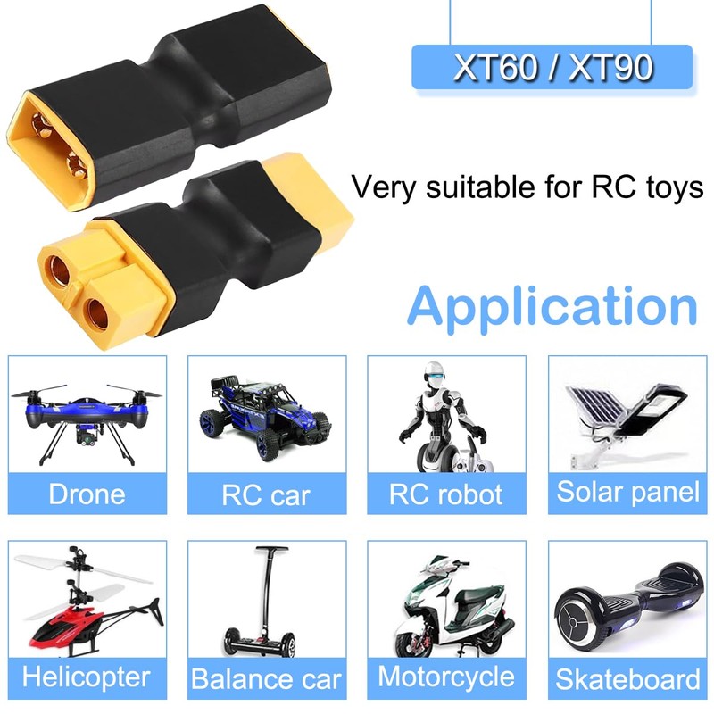 - Wide Application: XT60 connector, as the connection between the power battery and the device, is widely used in remote control aircraft, remote control toy cars, FPV drones, lithium batteries, etc. XT60 port conversion,xt60 port use.