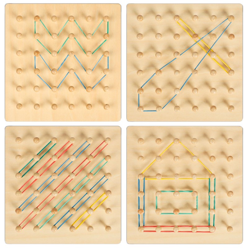 - Reliable quality: Montessori toys for children made of high quality natural wood and non-toxic paint. The geometric board has a smooth, burr-free surface where all sharp edges have been removed. Sturdy and extremely flexible rubber bands provide a great play environment for children.