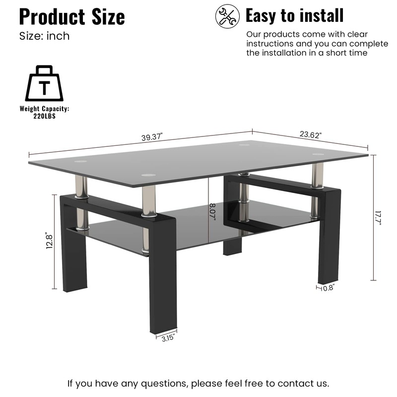 - 【Easy to Assembly of Coffee Tables for Living Room】Installation instructions and accessories are included in the packaging of this modern glass coffee table. We have a professional customer service team, if you have any questions, please feel free to contact us.