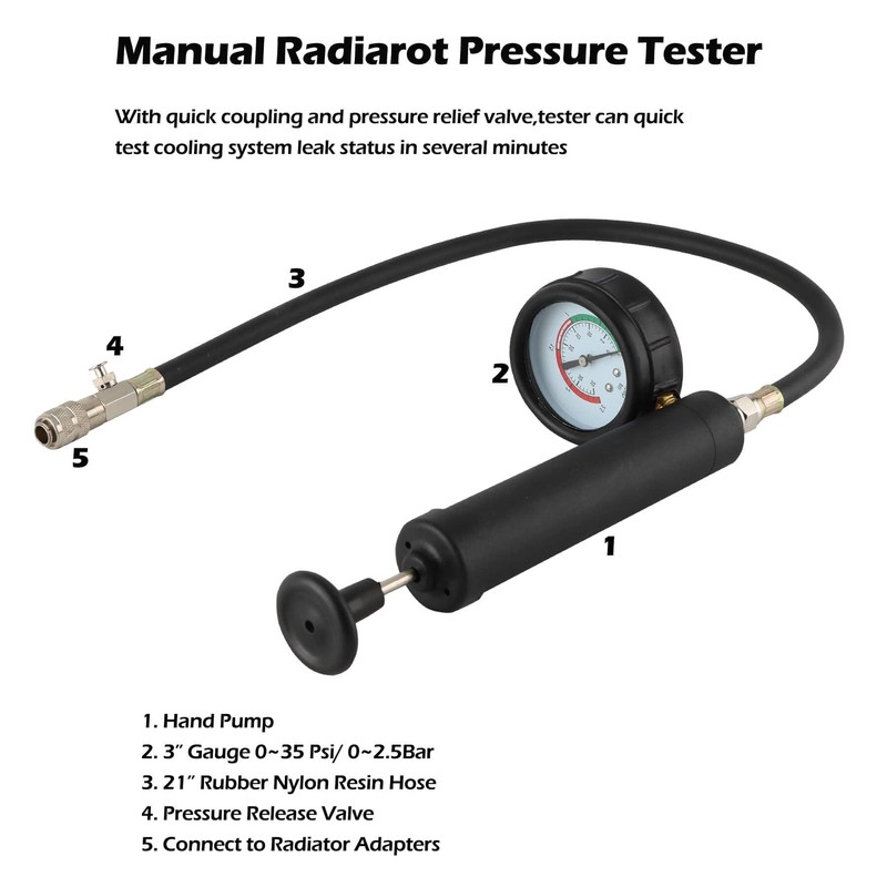 - Leak detection made easy: This radiator pressure tester helps to quickly identify coolant leaks in your vehicle, saving you time and money on expensive repairs.