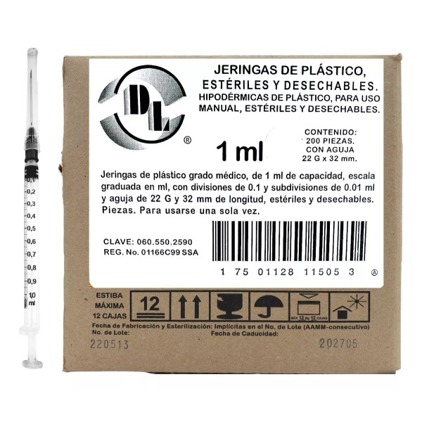 DL 200 Jeringas De Plástico Grado Médico 1 Ml Con Envío Gratis