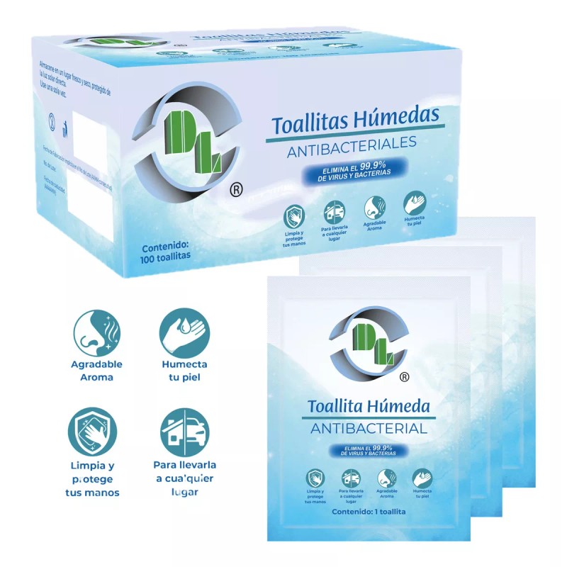 DL DL Toallitas Húmedas Antibacteriales Caja con 100 piezas
