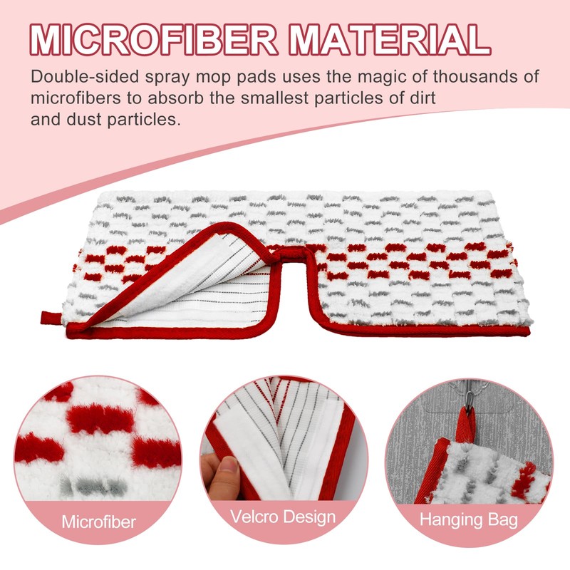 • STRONG CLEANING POWER: Made of 100% microfiber, spray mop refills remove stuck-on heavy messes on scrubbing zones, especially red scrubby fabric design aims to clean heavy dirt and oil stains just with water.