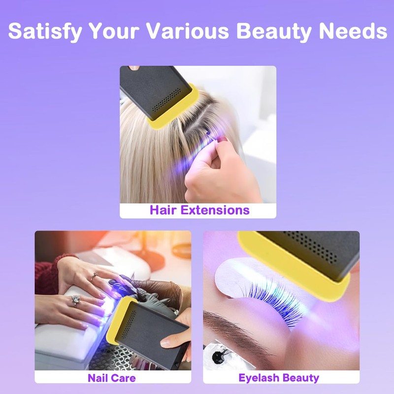 - Multi-Functional Application: This UV lamp can be used not only in Hair Extension, but also in nail care (Gel UV LED Nail Polish Lamp Nail Dry) and eyelid beauty (UV Lamp for Eyelash Extension)
