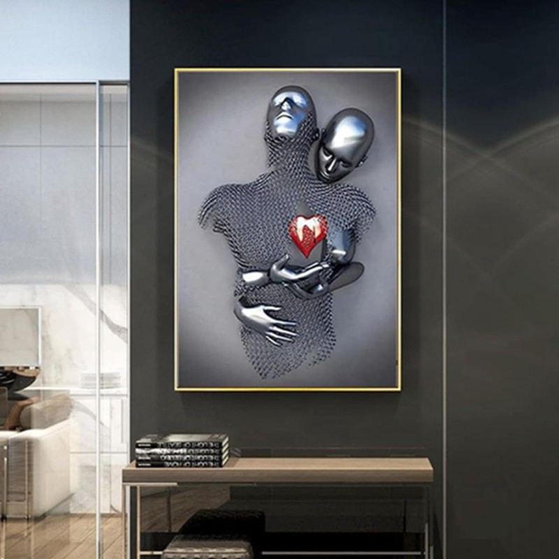 DLKAJFK 3D Romantic Lovers Metal Portrait Sculpture Abstract Poster, Love Kiss Picture Mural, Fashion Girl Sport Car Beauty Poster,Frameless (Picture-02,1Pcs-20x30cm)