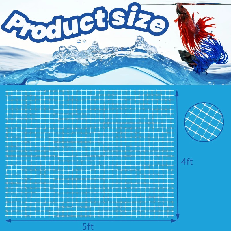 Size: Each plastic mesh measures 4 x 5 feet. Our aquarium net is suitable for aquarium top cover, divider and separator. You can cut the fish net to fit your needs.