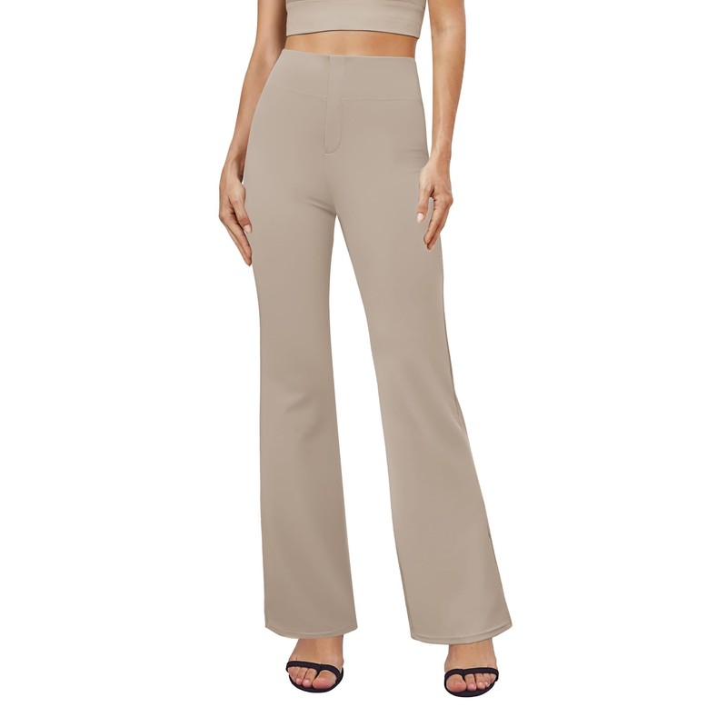 DLOODA Womens Bootcut Dress Pants Business Casual Work Pants with Pockets High Waist Stretchy Trousers Pull On Office Slacks Taupe