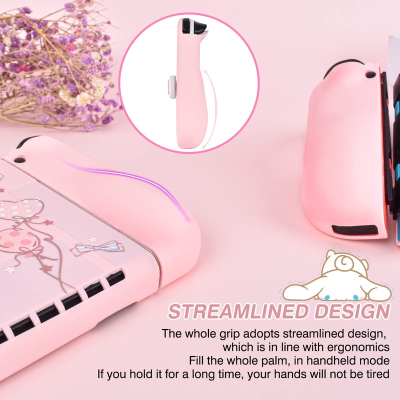 DLseego Cute Dog Switch OLED Protective Case Silicone Soft Cover Shockproof Pink Skin Joy Con Shell with 4PC Cat Claw Thumb Grips Caps