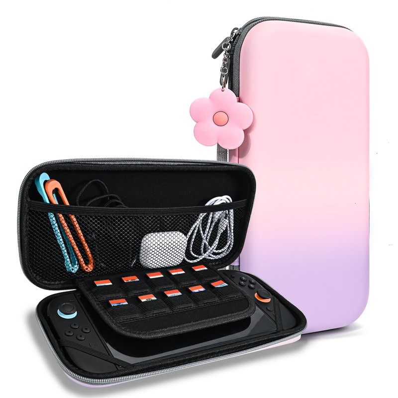 DLseego Switch2 ケース バッグセット スイッチ2 カバー スイッチ第2世代 ケース Switch2 収納バッグ(収納バッグ*1+花ストラップ*1)ゲームカード収納 防塵 防水 耐衝撃 持ち運び便利 旅行用 ピンク+パープル