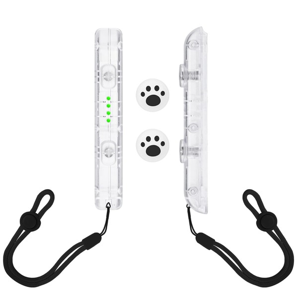 DLseego Wrist Strap for Switch Joycon, Switch Controller Hand Grip Accessories, Transparent JoyCon Gamepad Handle Lock Wrist Strap Lanyard, Adjustable Tightness, with 2 Thumb Grip Caps - White