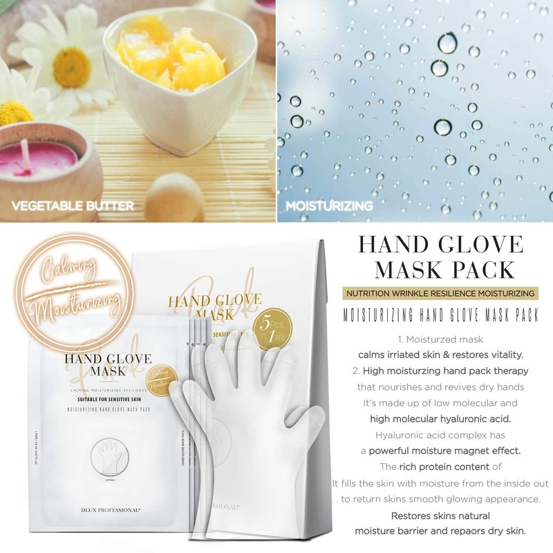 DLUX PROFESSIONAL Hand Masks - 5 Packs of 2 Moisturizing Fragrant Hand Mask Gloves, Protein Rich Moisturizing Gloves For Dry Hands, Single Use Hand Masks for Dry Cracked Hands Overnight