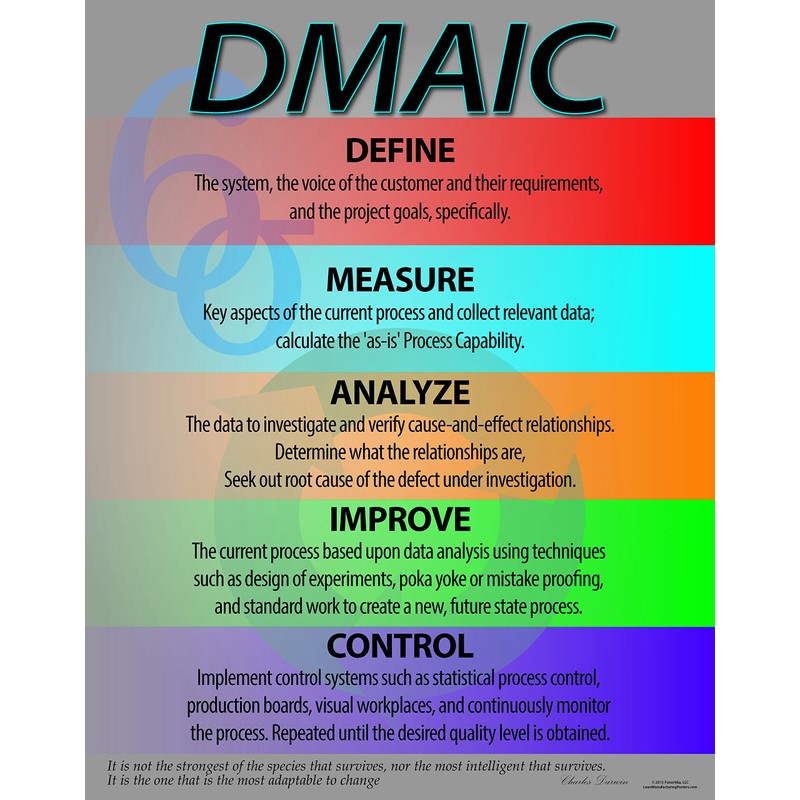 DMAIC 6 Sigma Poster 22" X 28", Made in The USA