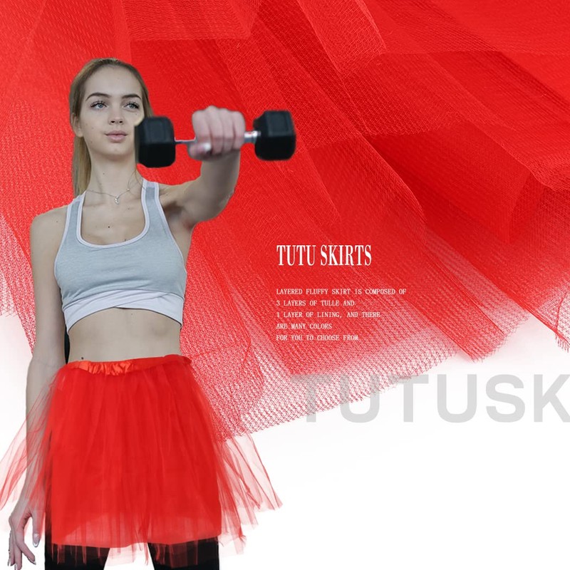 Dmaiy Women Tulle Tutu Skirts Elastic Ballet Dance Skirts Layered Classic Adult Short Skirt for Christmas Party Birthday, Red, 40 Short