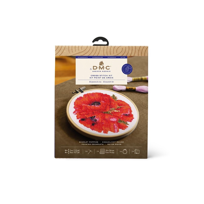 - Vibrant poppies standout against the white 14-count Aida fabric in this cross stitch design from Aksinya Nizhnik.