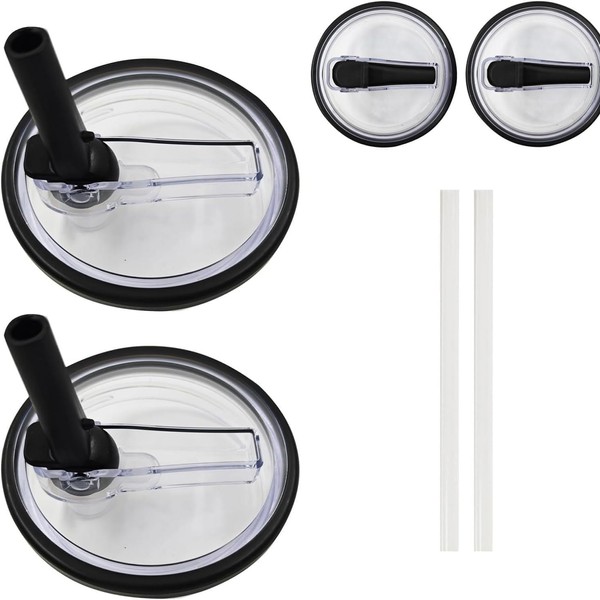 DmDoyy Cup Lid, Leak-Proof, Reusable, Accessories for Cup, Pack of 2 Removable Replacement Lids, 2 Drinking Straws
