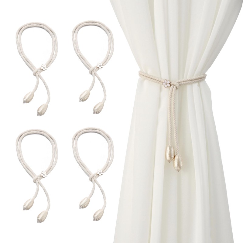 DmDoyy Flower Curtain Tiebacks, Pack of 4 Adjustable Curtain Tiebacks, Elegant Cotton Curtains Tiebacks, for Home, Office, Window Decorative & Curtains (Beige)