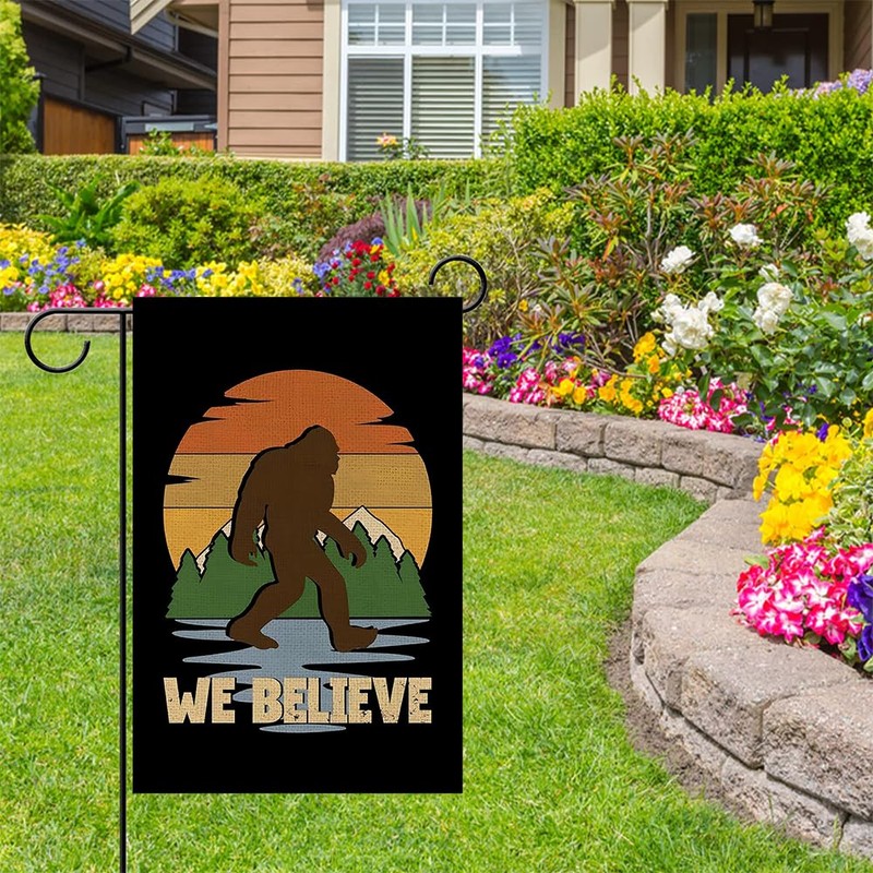 DMERBYL Funny Camper Garden Flag We Believe Vertical Double Sided Flags Outdoor Camping Trailer RV Yard Decoration 12.5 x 18 Inch
