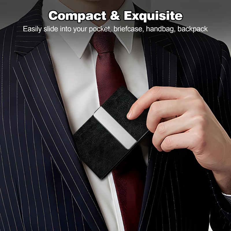 • Material: Our business card holder made of luxury PU leather and high quality Stainless Steel. It has a good solid construction, use longer.