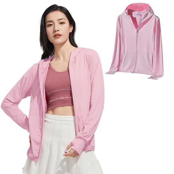 [DMFU] UV カット パーカー アイスシルク オーバーウェア ラッシュガード レディース 水着 接触冷感 涼しい 日焼け防止 UVカット 遮蔽率99.9%達成 UPF50+ 360度紫外線対策 夏 薄手 ラッシュパーカー 日焼け対策