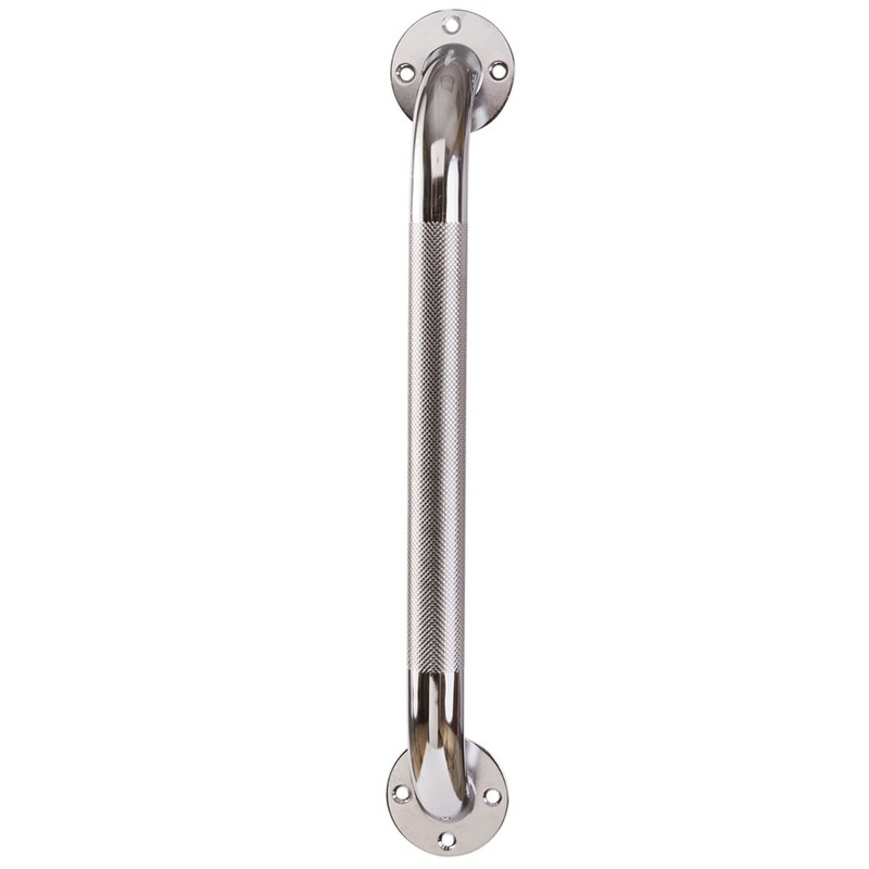 * Add more safety to your bath or shower area by installing this convenient, durable grab bar. * Solid steel construction offers a tight, comfortable grip as well as a nice modern look. * Made of high quality chrome-plated knurled steel that helps prevent rust and is built to last. * Extends 2-7/8 inches from wall; 1-1/4 inch bar diameter * Length: 24 inches * Complies with most government requirements * Do not use the grab bar to support your body weight. It is only for balance assistance. * Installation with tools required. All mounting screws and gaskets included.