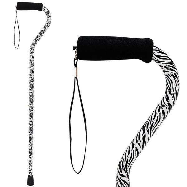 DMI Adjustable Designer Cane with Offset Handle and Strap, Zebra