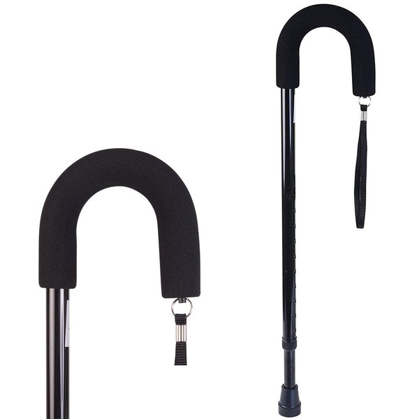 DMI Deluxe Adjustable Cane with Comfort Grip Handle and Strap, Black