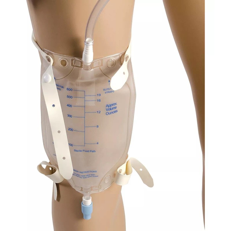 Plastic; PORTABLE URINAL is perfect for sitting, standing or walking for an extended period of time. URINAL BAG holds up to 20 ounces of urine and securely attaches to the leg with secure holster; MALE URINAL brings security and freedom to those who suffer from bladder leakage or urinary incontinence to provide an alternative to pads, diapers, reusable underwear or protective briefs; TRAVEL URINAL includes an elastic waistband that provides a secure and comfortable fit around the waist. While the jock strap is stretchable, it may not fit well on waists exceeding 42 inches; URINAL FOR MEN is reusable and washable. To clean, wash with soap and water and dry with a cloth. Urinals should be air dried on a flat surface not in direct heat or sunlight which could cause the rubber to become dry, hard and less elastic; TRAVEL URINAL FOR MEN includes jockstrap, sheath measuring 8 inches long, urinal bag measuring 10.5 x 6 holding up to 20 ounces of urine with leg holster and hose with one way valve that eliminates fluid return DMI urinal for men is a McGuire-style male urinal that is washable, reusable and fits most sizes. The advanced engineering has a one way valve that stops fluid return and the leg holster stays put when on the move. Todos nuestros productos estan en inglés SKU 21062217395