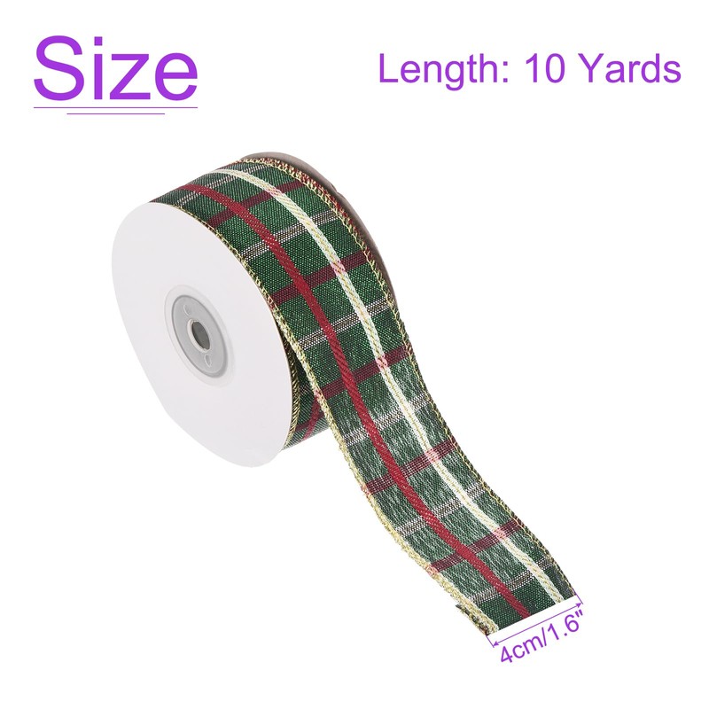 - PACKAGE CONTENT:1 Pack of Gingham Ribbon;Color: Green, Red And White;Width: 4cm(1.6 Inch);Length: 10 Yards;Material: Polyester