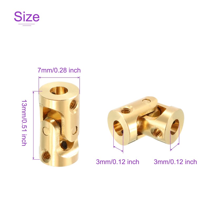 DMiotech 2 Pack 3mm to 3mm Rotatable Universal Steering Shaft U Joint Coupler L13 x D7 Gold Tone