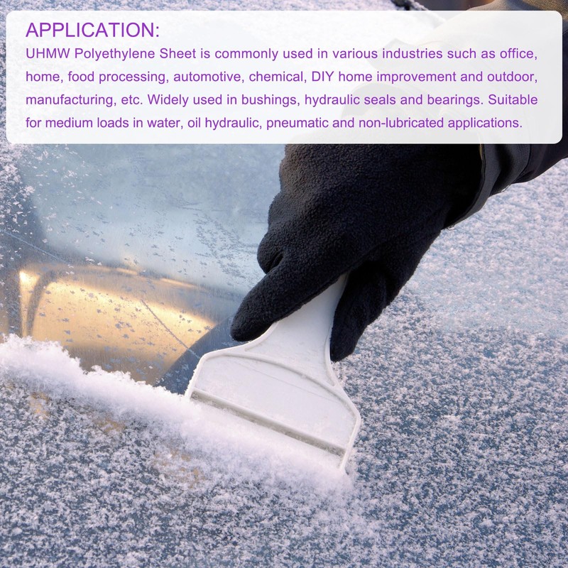 - APPLICATION: UHMW Polyethylene Sheet is commonly used in various industries such as office, home, food processing, automotive, chemical, DIY home improvement and outdoor, manufacturing, etc. Widely used in bushings, hydraulic seals and bearings. Suitable for medium loads in water, oil hydraulic, pneumatic and non-lubricated applications.