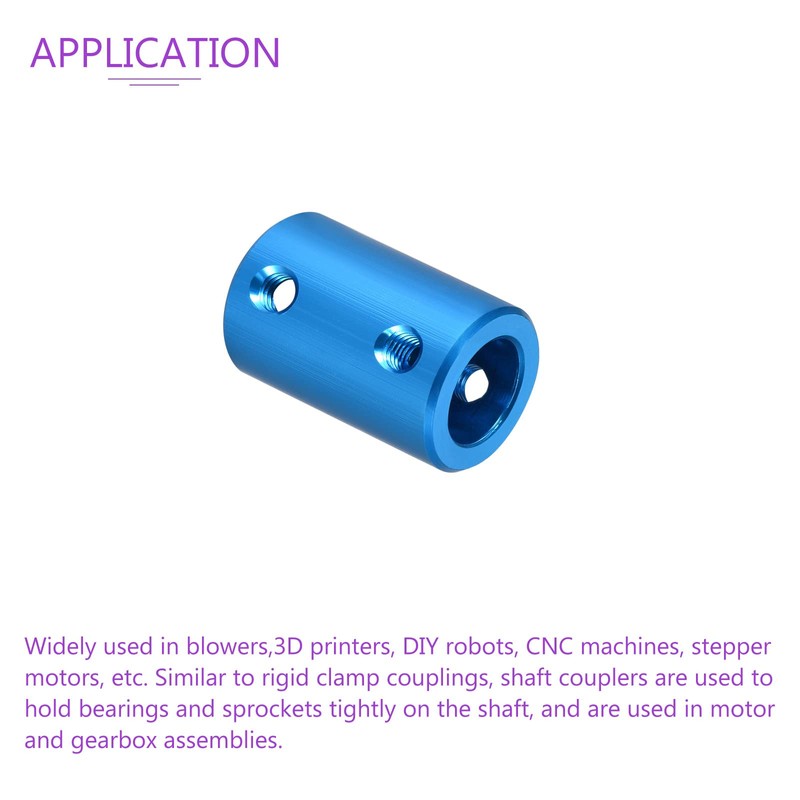 - Application: Widely used in blower machine, 3D printer, DIY robot, CNC machine, stepping motor, etc. Similar to rigid clamp couplings, the shaft coupler is used to hold bearings and sprockets securely to the shaft and is used in motor and gearbox assemblies