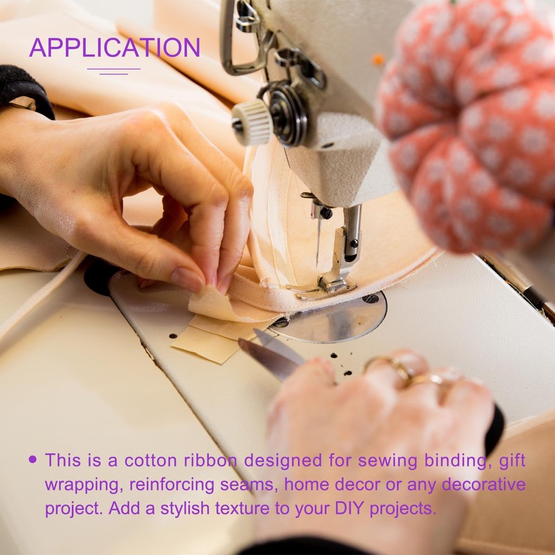 - APPLICATION: This is a cotton ribbon designed for sewing binding, gift wrapping, reinforcing seams, home decor or any decorative project. Add a stylish texture to your DIY projects. Widely used in clothing, textile accessories, hair accessories, shoelaces, aprons, scarves, belts, tablecloths, bundling, packaging, DIY art projects, watch straps, wallets, handbags, holiday cards, invitation stickers, photo frames, scrapbooks, etc.